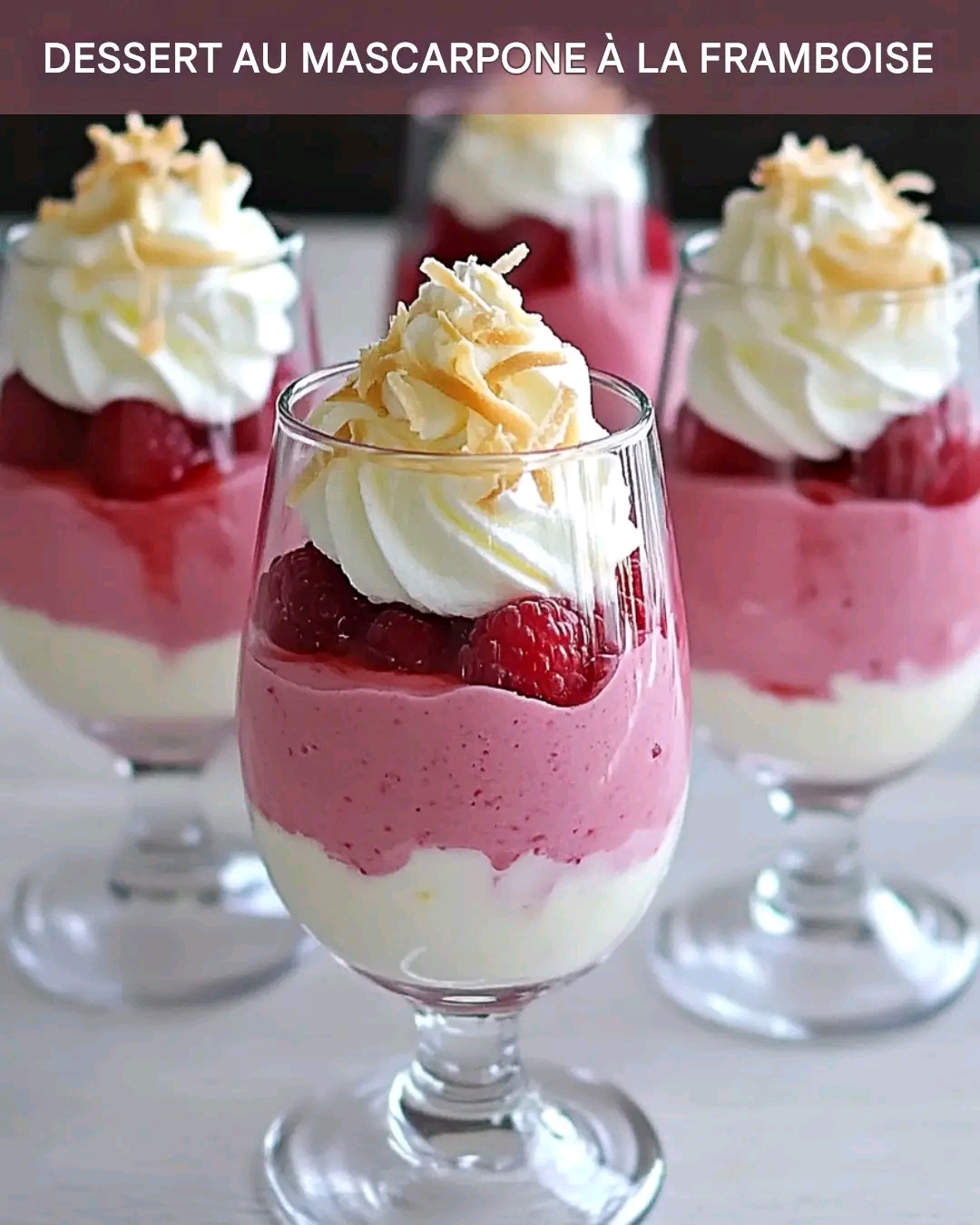 Un dessert léger en verrine, alliant la saveur fruitée des framboises à l’onctuosité d’une couche de mascarpone.