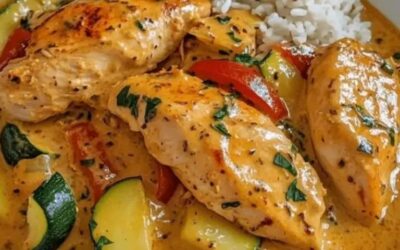 Ingrédients: • 4 filets de 🍗 poitrine de poulet • 1 poivron rouge, coupé 🌶️ en lanières • 1 poivron…