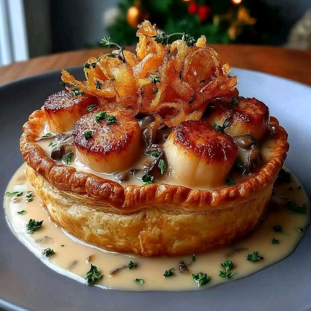Vol-au-vent aux Saint-Jacques, topinambour et chips de salsifis
