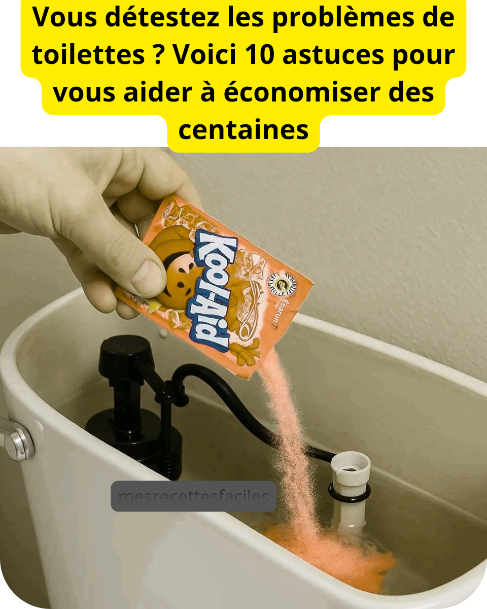 Un moyen simple mais efficace de vérifier s’il y a des fuites dans vos toilettes est d’utiliser Kool-Aid. Choisissez un sachet de couleur foncée, comme du raisin ou de la cerise, et versez-le dans le réservoir des toilettes. Attendez environ 30 minutes sans tirer la chasse d’eau. Si la couleur apparaît dans la cuvette des toilettes, vous avez une fuite. Cette méthode est rentable et facile à mettre en œuvre, ce qui vous permet d’identifier les fuites à un stade précoce et de les traiter avant qu’elles n’entraînent une augmentation des factures d’eau.